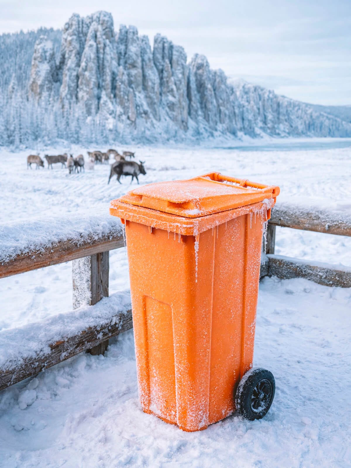 Материал — первичный ПНД — выдерживает интенсивную эксплуатацию, перепады температур, снег, дождь и механические нагрузки. Это гарантирует долгий срок службы контейнера на открытом воздухе круглый год. Колёса делают перемещение лёгким даже при полной загрузке, а плотная крышка препятствует запахам, осадкам и доступу животных. Формат соответствует стандарту евроконтейнера для мусора, что обеспечивает совместимость с коммунальной техникой.